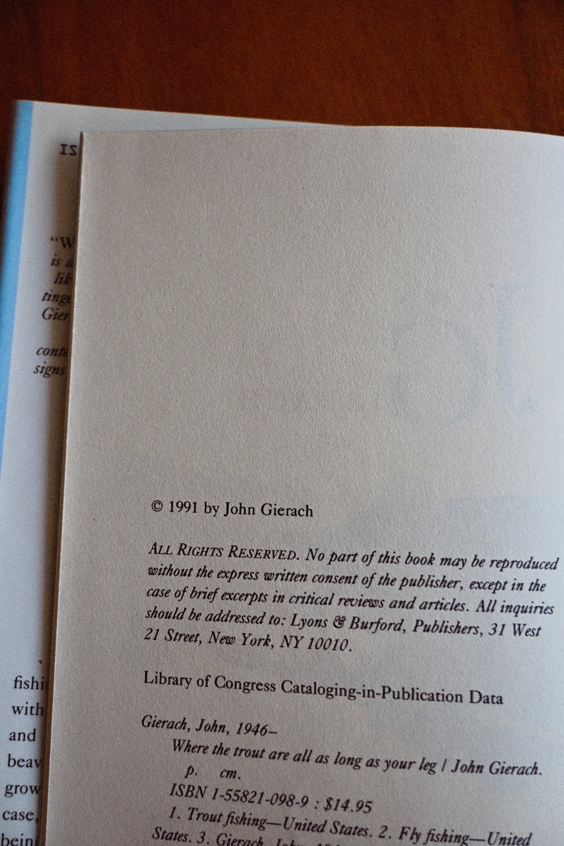And so Where the Trout Are All as Long as Your Leg transports the reader to the best of these places, where the fish are always bigger and the hatches last forever. After all, it's these magical places that Gierach so vividly evokes that remind us how precious -- and precarious -- are the unspoiled havens of the natural world.